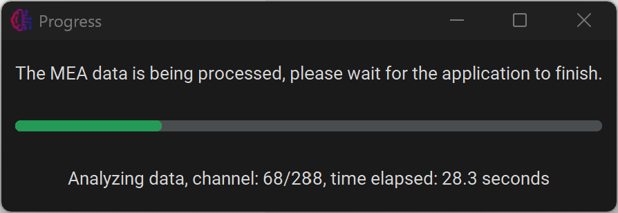 A new window will appear, keeping the user up to date with the progress. The analysis can be cancelled by closing this window. This might not be instant.