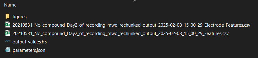 During the analysis, the application will create an “outputfolder” where it stores all results and details from the analysis. This outputfolder can be found in the same location as the raw data file. The outputfolder will share the same name as the raw data file, with the date and time of the analysis attached at the end. The outputfolder contains several files: