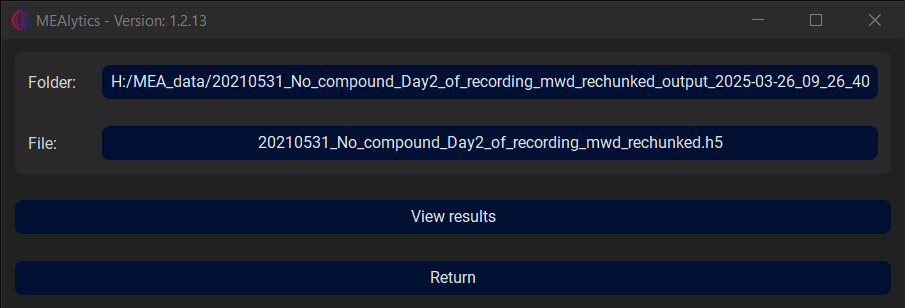 MEAlytics allows the user to inspect the results after the analysis has been completed. In the main menu, select View Results.