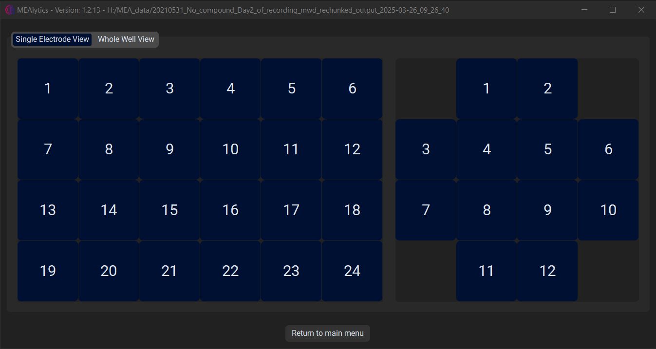 From the Single Electrode View tab, the user can select the desired well and electrode, after which a new window will open.
